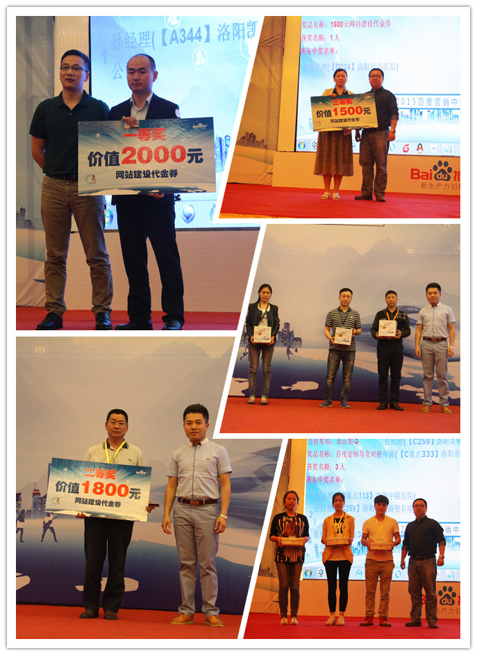 在會(huì)議進(jìn)行當(dāng)中,我們也設(shè)置了幸運(yùn)抽獎(jiǎng)環(huán)節(jié),由百度公司渠道部區(qū)域總經(jīng)理董榮華先生,百度公司渠道部區(qū)域總監(jiān)郭曉鵬先生和百度公司市場(chǎng)部區(qū)域經(jīng)理劉方豪先生分別抽取了參會(huì)的幸運(yùn)朋友,同時(shí)送上了百度的精美禮品,分別是三等獎(jiǎng)價(jià)值一千五百元的網(wǎng)站建設(shè)代金券、二等獎(jiǎng)價(jià)值一千八百元的網(wǎng)站建設(shè)代金券和一等獎(jiǎng)價(jià)值兩千元的網(wǎng)站建設(shè)代金券各一個(gè),更有幸運(yùn)獎(jiǎng)共九名獲得百度馬克對(duì)杯、小熊酸奶機(jī)、百度發(fā)財(cái)熊u盤(pán)。